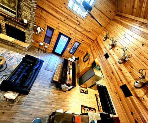 Guests celebrating Honeymoon or Anniversary love this cabin for proximity to Water & Creek, impressively beautiful natural scenic views while enjoying the panoramic outdoor with tall pine trees from rear decks.